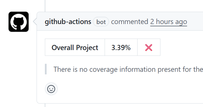 core.setFailed('Overall coverage is less than 80%!')Once the above file is pushed in code repository, whenever a code push or pull request is created GitHub Actions will trigger a CI build. This CI build will run the jacocoTestReport gradle task, whose report would be used to post a comment on the pull request(PR) and a check would be added for PR merge.